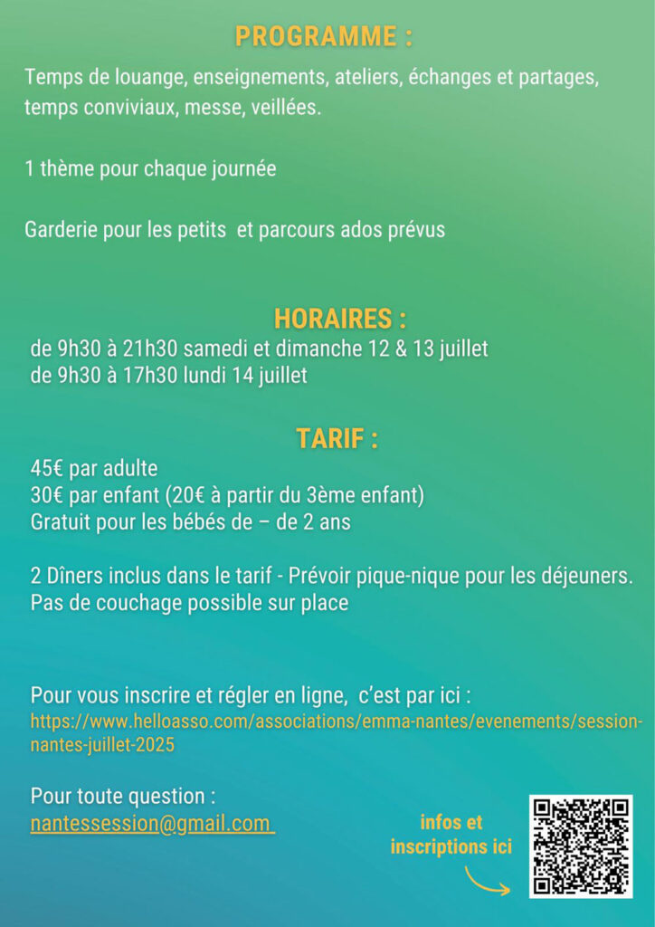 La communauté de l’Emmanuel organise une session d’été du 12 au 14 Juillet 2025 à l’église Sainte-Madeleine (paroisse Sainte-Madeleine de Nantes)