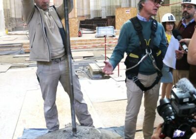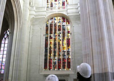Presque cinq ans après l’incendie de la cathédrale de Nantes, une visite de chantier était organisée pour les journalistes, ce mercredi 14 mai 2025. Un point d’étape que la Direction Régionale des Affaires Culturelles a voulu partager avec les journalistes en leur permettant d’assister à la dépose de la dernière des quatre pièces décoratives situées à la croisée des voûtes de la nef.