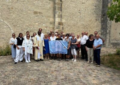 Au fil des kilomètres et des villes traversées – Sainte-Luce, Mauves, Thouaré – certains nous ont quittés. Finalement, nous nous sommes retrouvés à 11 pour marcher ensemble jusqu’à Saumur. Neuf d’entre nous ont poursuivi jusqu’à Besançon. Mais tout au long du chemin, d’autres pèlerins nous ont rejoints pour une journée ou deux. Chaque jour, nous avions des invités : membres d’associations pèlerines d’Anjou, de Touraine, du Centre-Val de Loire… Même des marcheurs de la voie de Vézelay nous ont accueillis.