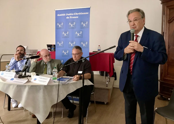 Table ronde animée par Jean Dominique Durand pdt de l’AJCF, avec la participation du Père Christophe Beaublat, du Pasteur Roland Poupin et du Rabbin Eric Aziza
