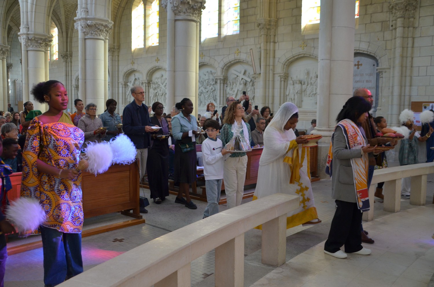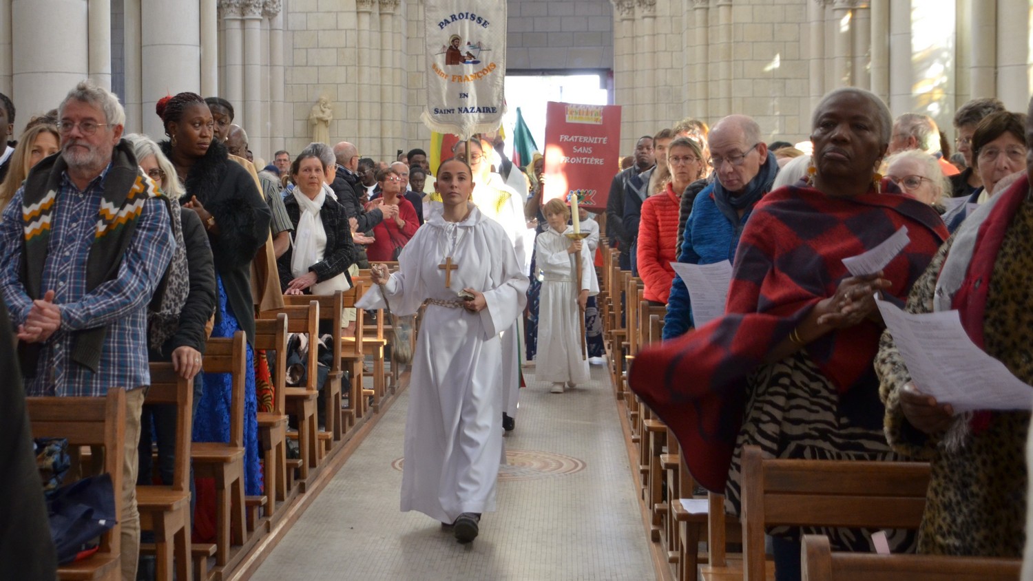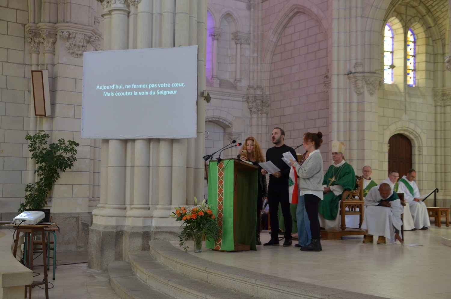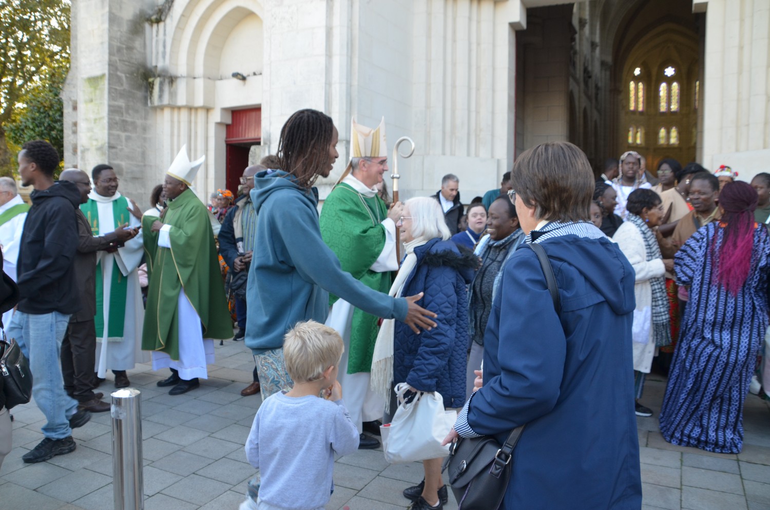 Les communautés de Nantes et Saint Nazaire ont célébré autour de notre évêque et de Mgr N’Koué, évêque de Parakou au Bénin (diocèse jumelé), accompagnés d’une chorale internationale, qui a animé en anglais, espagnol, portugais, italien, sango, manjack, syriaque, malgache… Une belle occasion de mettre en valeur la catholicité de l’Eglise, et de souligner notre unité dans la diversité.