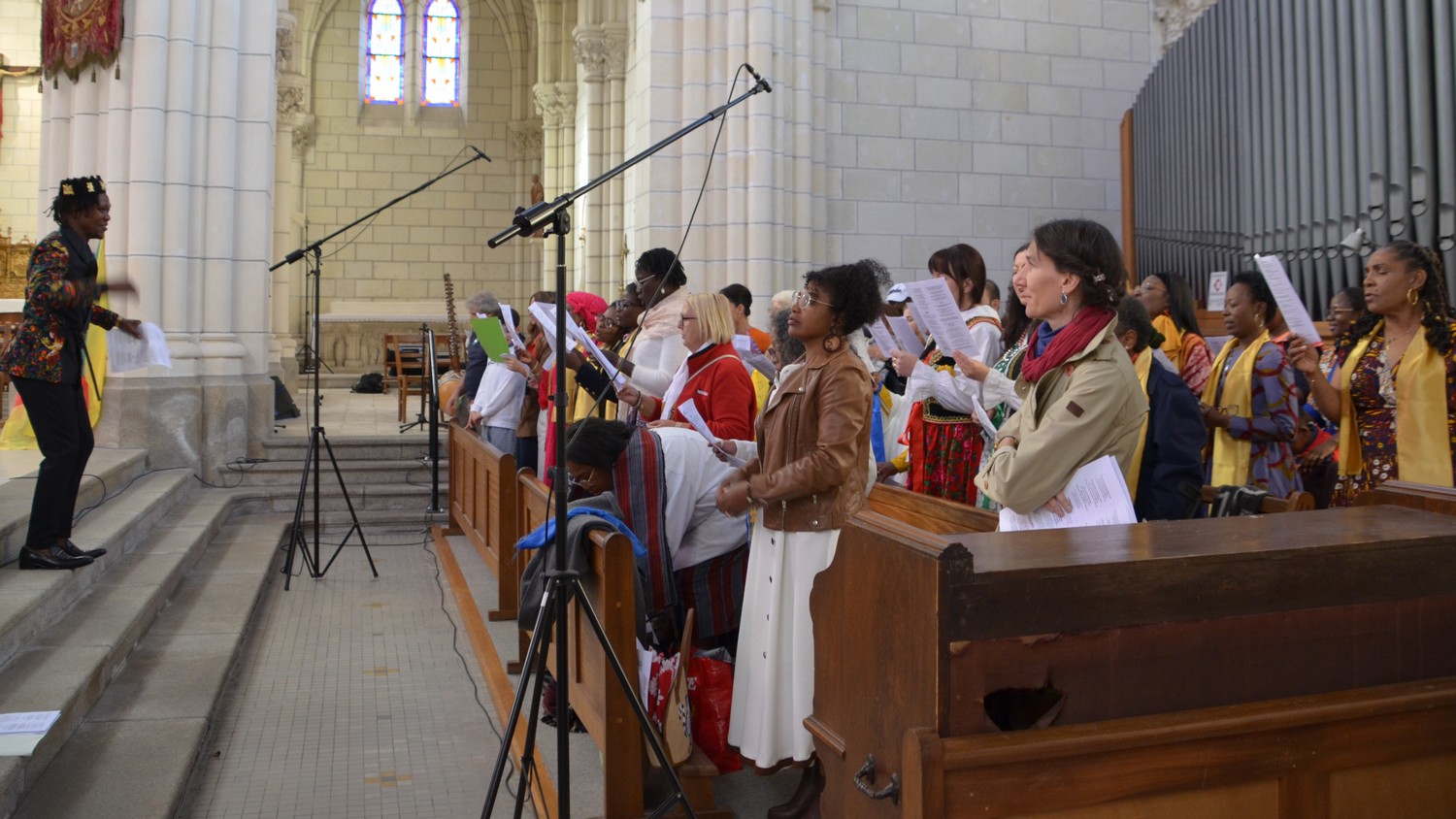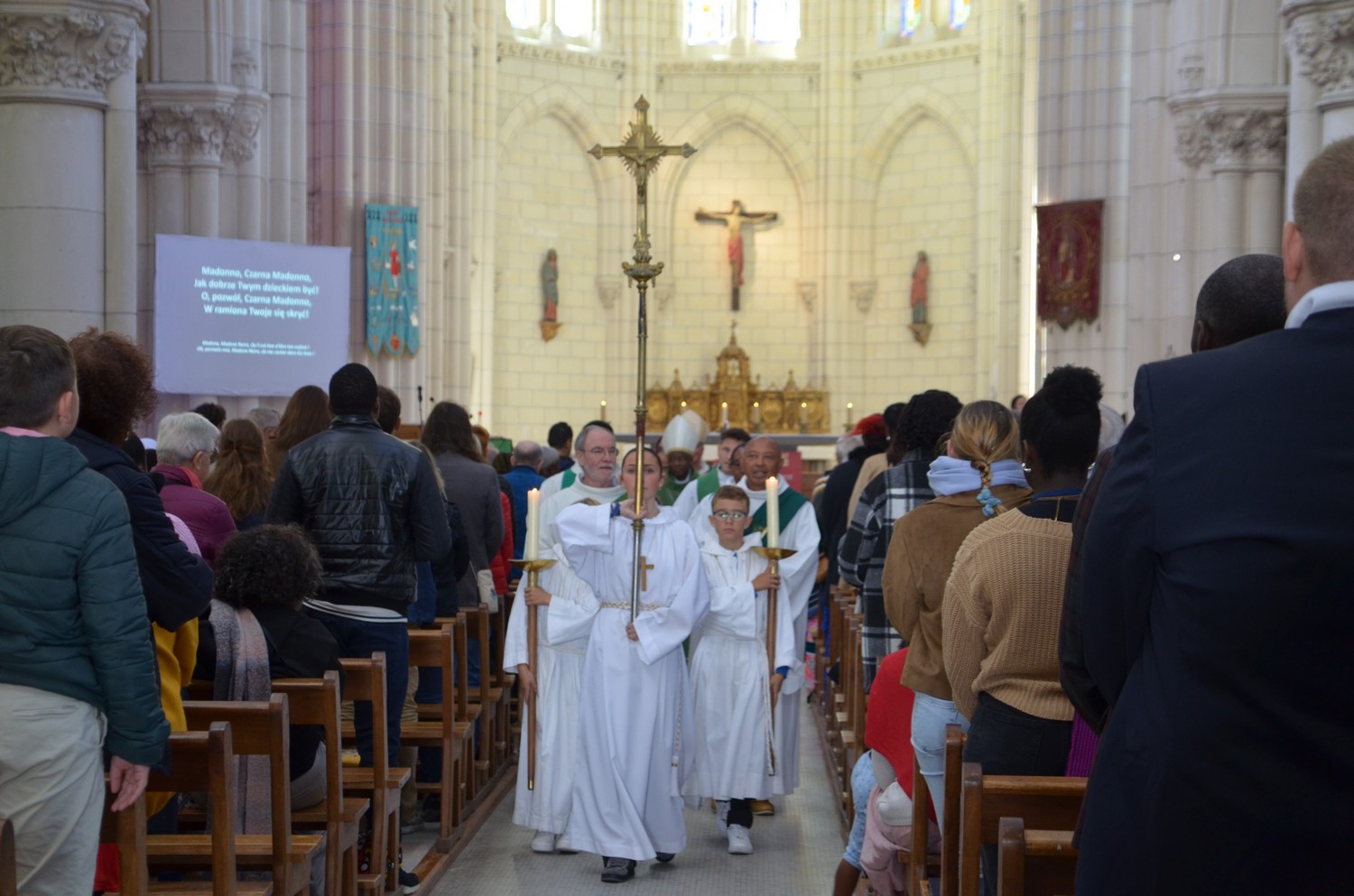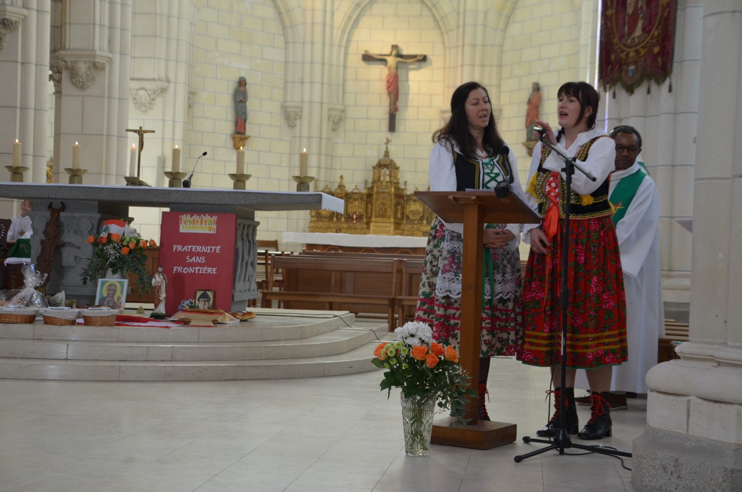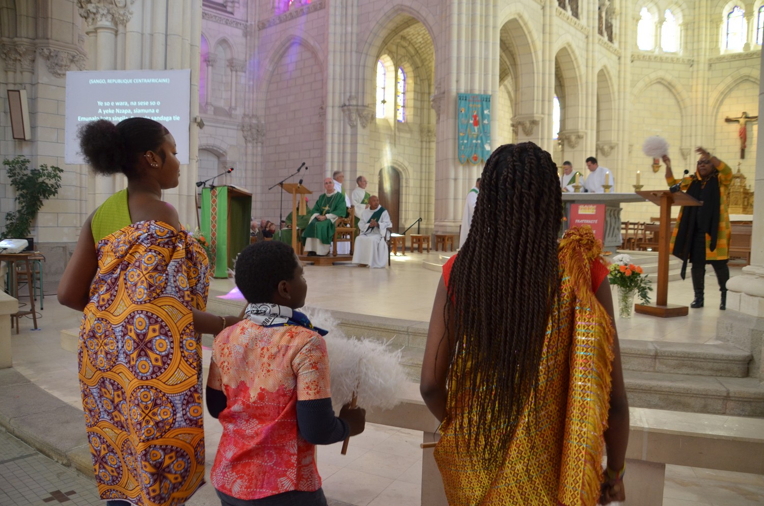 Les communautés de Nantes et Saint Nazaire ont célébré autour de notre évêque et de Mgr N’Koué, évêque de Parakou au Bénin (diocèse jumelé), accompagnés d’une chorale internationale, qui a animé en anglais, espagnol, portugais, italien, sango, manjack, syriaque, malgache… Une belle occasion de mettre en valeur la catholicité de l’Eglise, et de souligner notre unité dans la diversité.