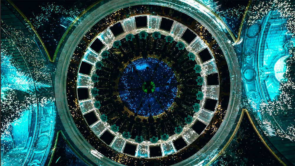 En soirée, durant 45 min environ, les visiteurs partageront une expérience immersive sous la coupole peinte du dôme. L’architecture classique et la création numérique y dialoguent dans une succession de tableaux alliant création visuelle et musicale.