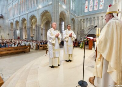 Les témoins qui jalonnent nos vies nous convoquent à témoigner. Ainsi les deux ordonnés de ce jour, nous disent que « la mission est là, belle, urgente, décisive. Avec l’assurance, qu’il est fidèle, le Dieu qui nous a appelé à la communion de son fils ». Et de conclure : « François, Nicolas qu’habite en vous la joie du serviteur ! »