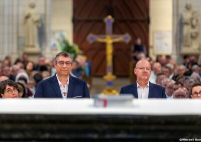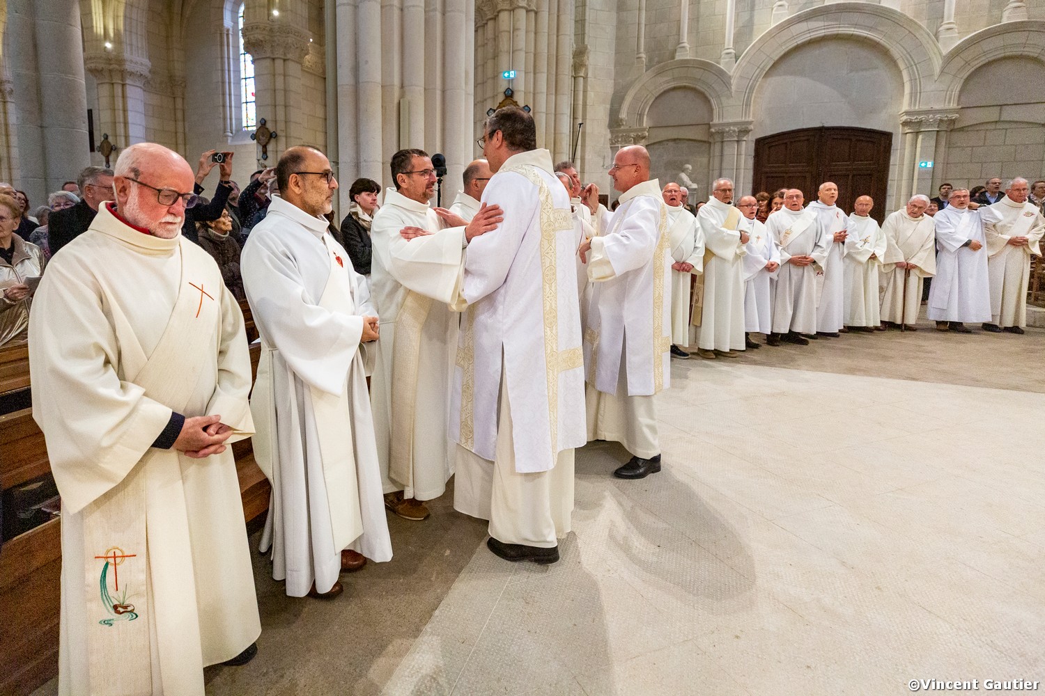 Le 26 avril 2025, Mgr Percerou présidait la célébration d’ordination diaconale de Nicolas Jean et François Proux, en la basilique Saint-Donatien de Nantes. Leurs familles et des paroissiens de Saint-Martin-du-Val-d’Erdre, et Saint-Pierre-sur-Loire et de Sainte-Marie-du-Val-de-Sèvre étaient en fête pour entourer les deux ordinands.