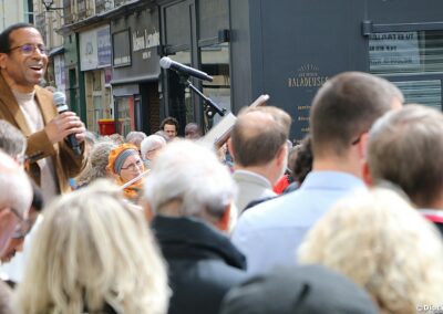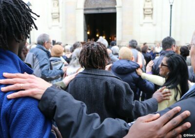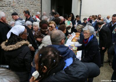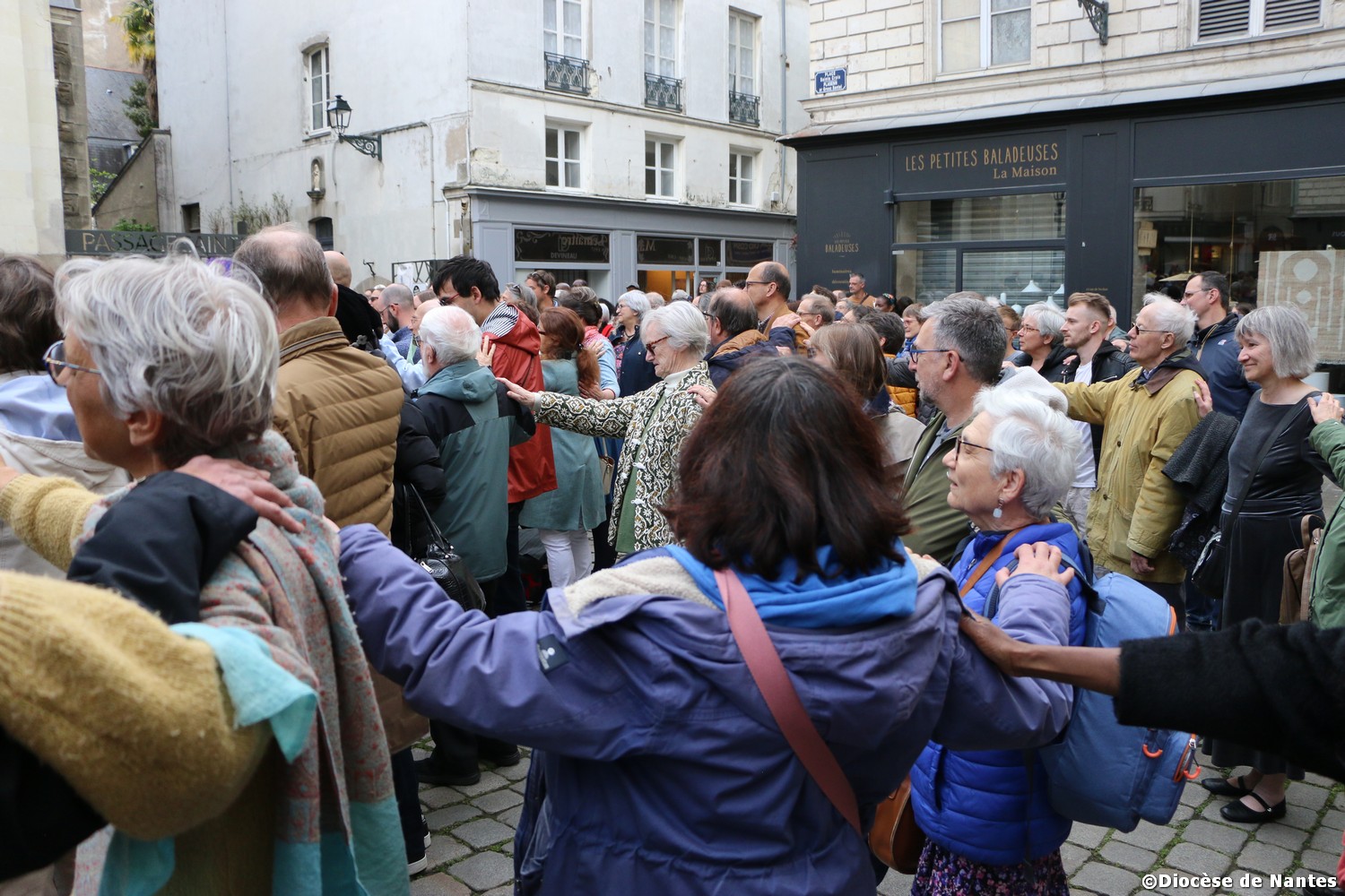 Près de 500 fidèles ont répondu présent à cette invitation qui s’est déroulée joyeusement sur la place Sainte-Croix de Nantes. Beaucoup d’émotion pour cette célébration interconfessionnelle introduite par des chants issus des répertoires des différentes confessions chrétiennes représentées. Un grand goûter de Pâques a suivi, autour et dans le Passage Sainte-Croix qui était ouvert pour l’occasion. Tous ont pu y dialoguer, se rencontrer, le visiter.
