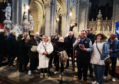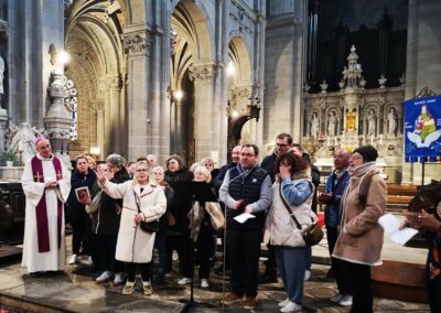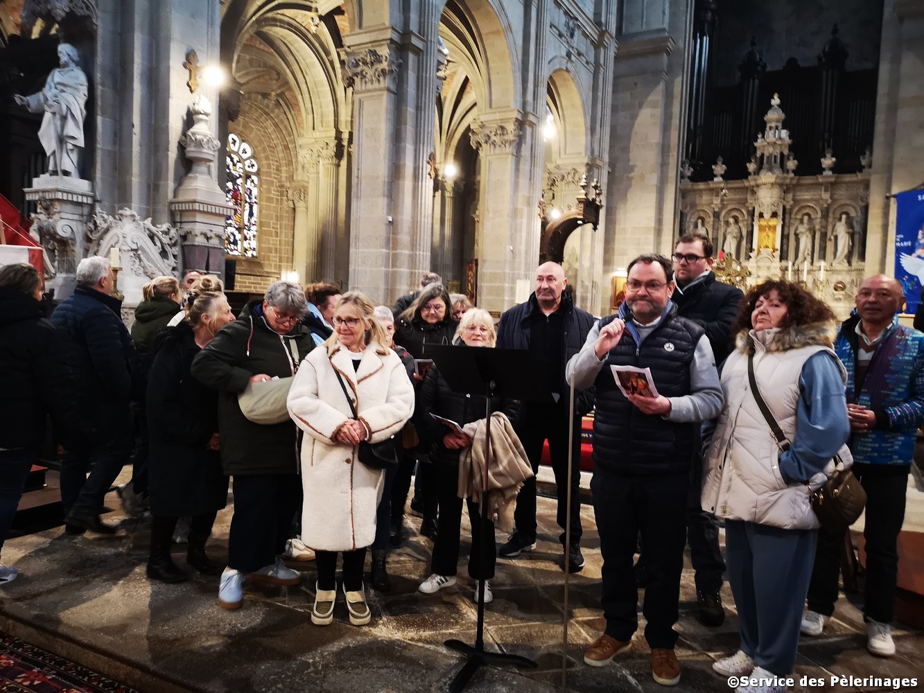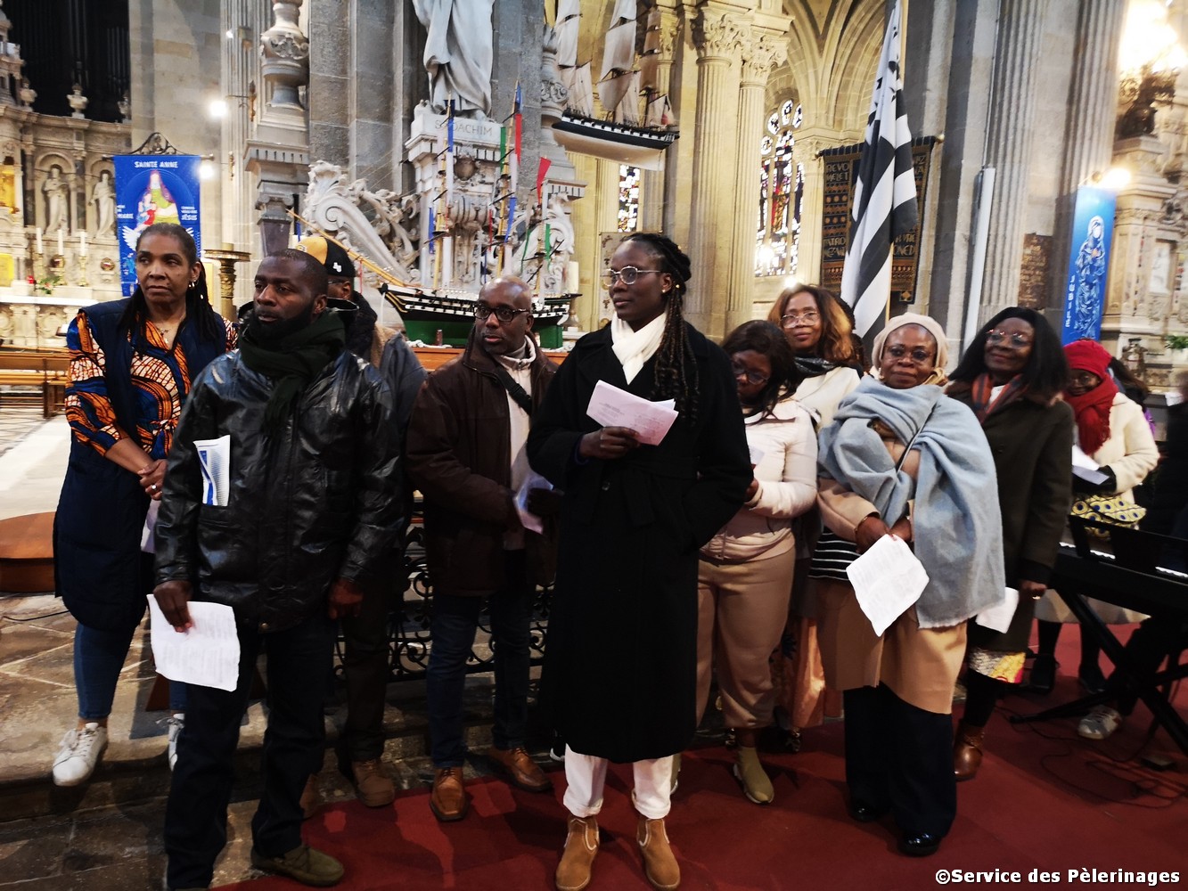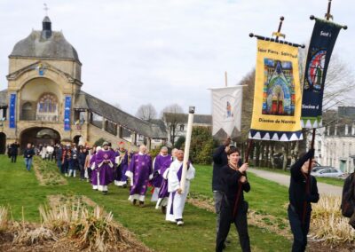 Ce dimanche 16 mars 2025, le service des pèlerinages a conduit une délégation diocésaine au sanctuaire de Sainte-Anne-d’Auray (56). Elle était composée de la pastorale de la Santé, avec les mouvements Lourdes Cancer Espérance, Amitié Espérance, la Fraternité Franciscaine Séculaire, les aumôniers hospitaliers de St Nazaire, de St Brévin, de Nantes, de Machecoul et des bénévoles paroissiaux du Service Évangélique des Malades en renfort au dispositif d’accompagnement étaient présents deux médecins et des scouts routiers, et de la Diaconie, avec le Secours Catholique, la pastorale des Migrants, l’aumônerie des Gens du voyage, mais aussi Chemin d’Espoir, l’aumônerie des prisons, la mission en quartiers populaires, ou encore des pôles solidarité. Ce temps fort doublement jubilaire (année de l’Espérance et 400ème anniversaire des apparitions de Ste Anne) était accompagné musicalement par la Pré Maîtrise, la Maîtrise de Musique Sacrée à la cathédrale de Nantes et animé par la chorale africaine. La journée était présidée par Mgr Laurent Percerou et a ravi ses presque 300 participants. Leurs échos traduisent l’émotion et l’ambiance de la journée.