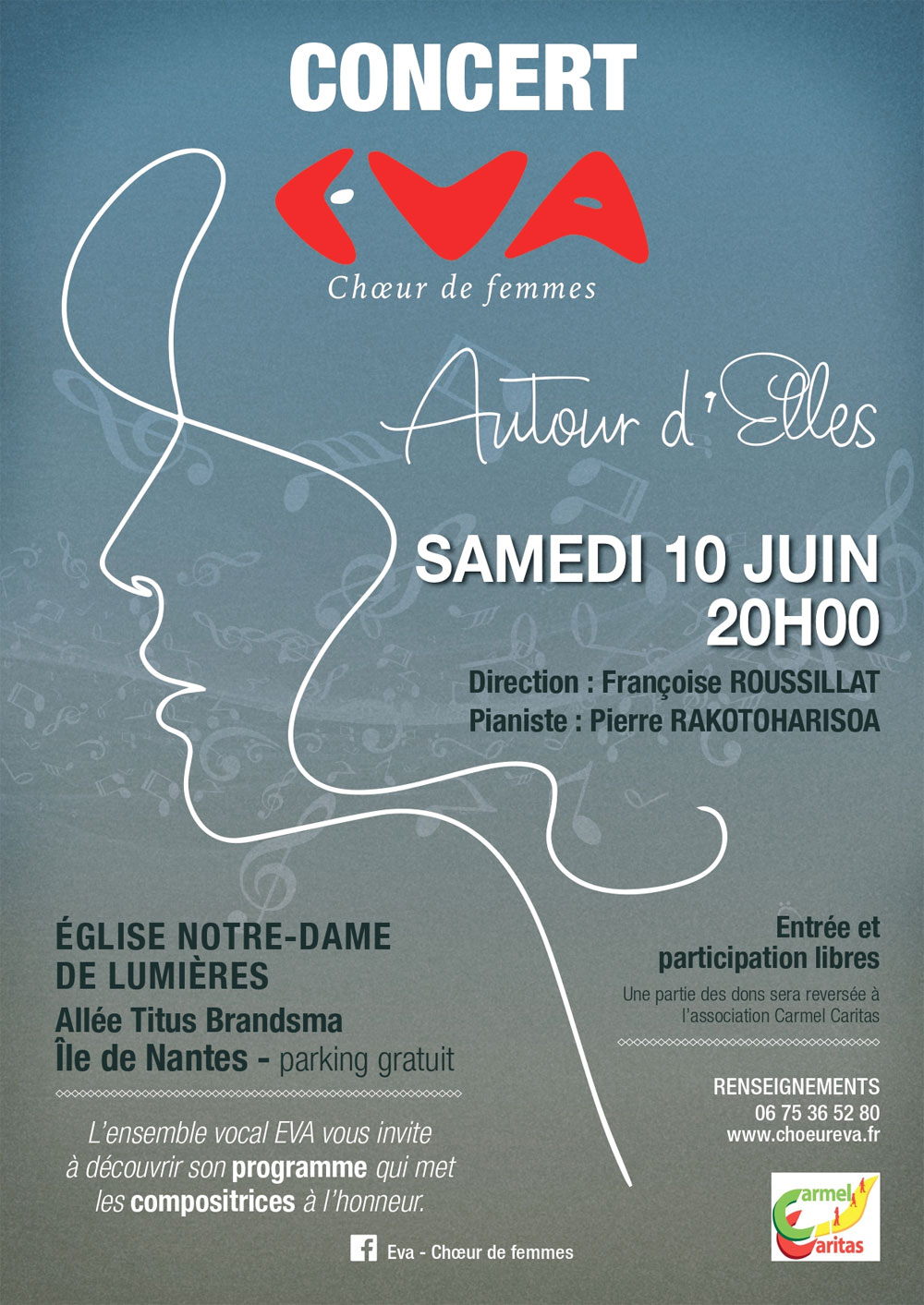 L’Ensemble Vocal EVA, chœur de femmes, qui met les compositrices à l’honneur, donne un concert le samedi 10 juin 2023 à 20h en l’église Notre-Dame de Lumières (Allée Titus Brandsma – Île de Nantes)