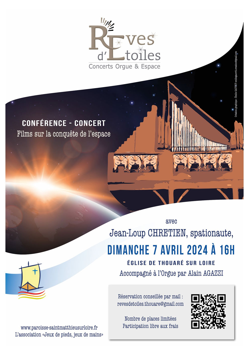 Jean-Loup ChretienLa paroisse Saint-Matthieu-sur-Loire et l’association « Jeux de pieds, jeux de mains » vous invitent à une conférence concert « Rêves d’étoiles » le dimanche 7 avril 2024 à 16h en l’église de Thouaré-sur-Loire.