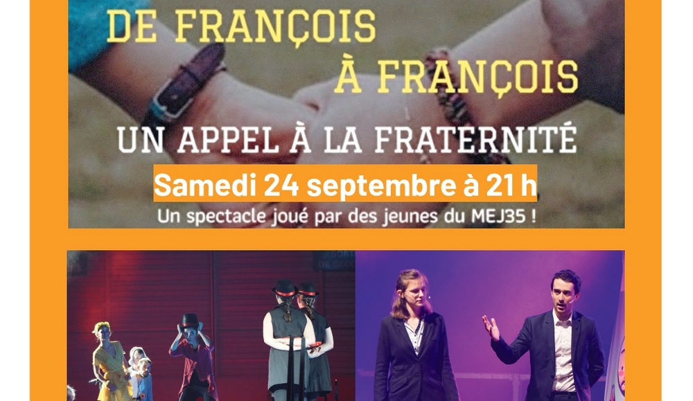 Au cœur du congrès national du Mouvement des Cadres Chrétiens, un spectacle ouvert à un large public sera donné . « De François à François » est joué par des jeunes du MEJ (Mouvement Eucharistique des Jeunes) de Rennes qui l’ont préparé durant six jours de camp. Ils seront une centaine sur scène, âgés de 8 à 18 ans pour aborder de façon originale, la question de la fraternité. Musiciens, danseurs, comédiens, acrobates, chanteurs… Durant plus d’une heure, ils seront migrants, bénévoles d’ONG, ménestrels, sultan, bon Samaritain, Mère Térésa, l’abbé Pierre, ou encore Sœur Emmanuelle.