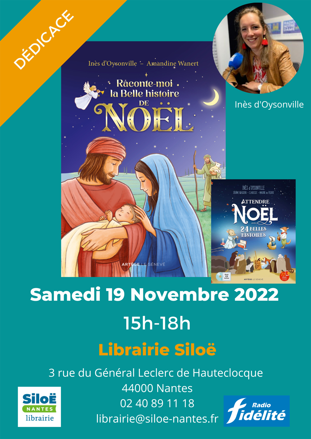 Rencontre dédicace avec Inès d’Oysonville, le samedi 19 novembre 2022 de 15h à 18h à la librairie Siloë (3 rue du général Leclerc de Hauteclocque à Nantes, près de la Cathédrale).