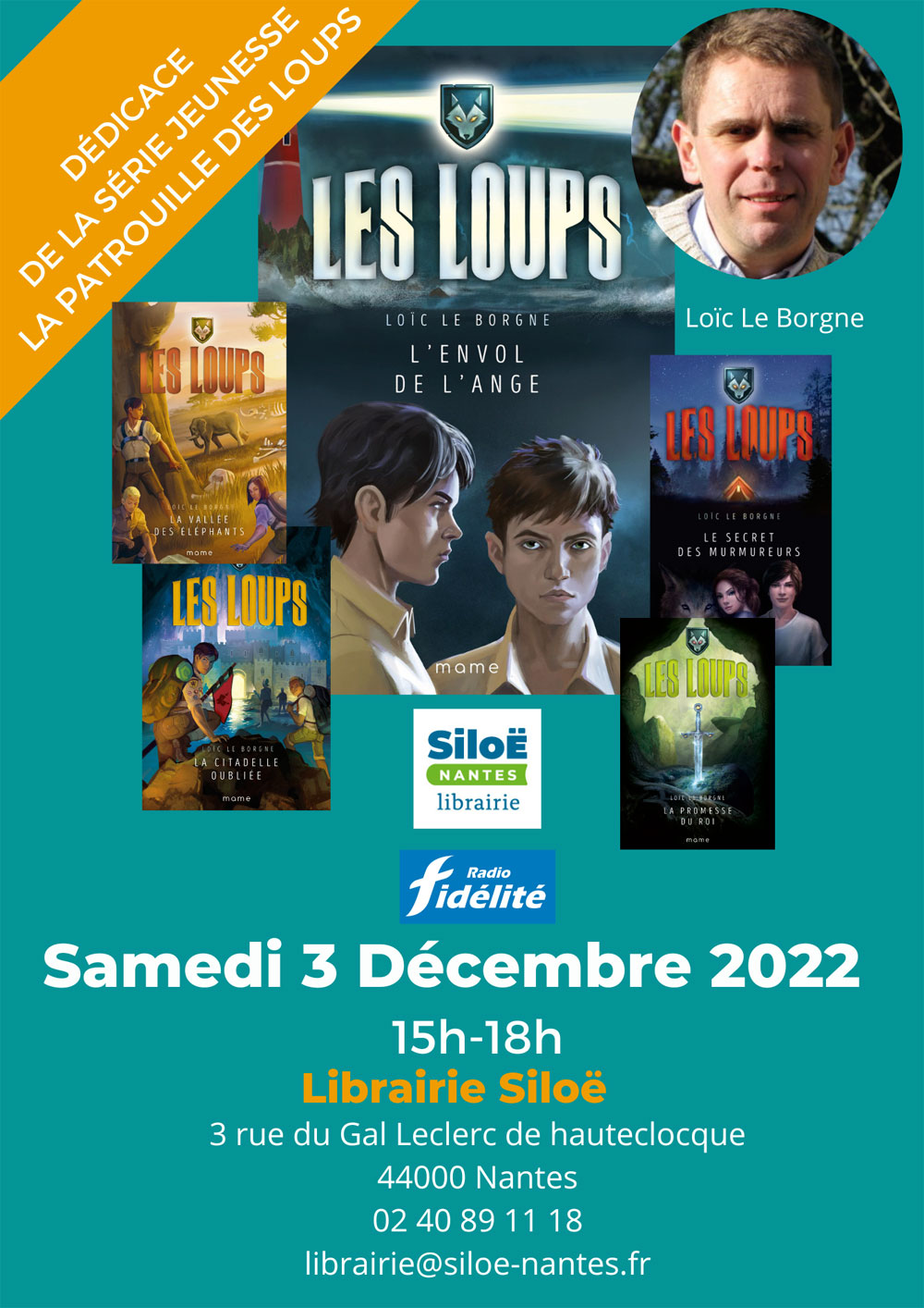 Rencontre dédicace avec Loïc Le Borgne, le samedi 3 décembre 2022 de 15h à 18h à la librairie Siloë (3 rue du général Leclerc de Hauteclocque à Nantes, près de la Cathédrale).
