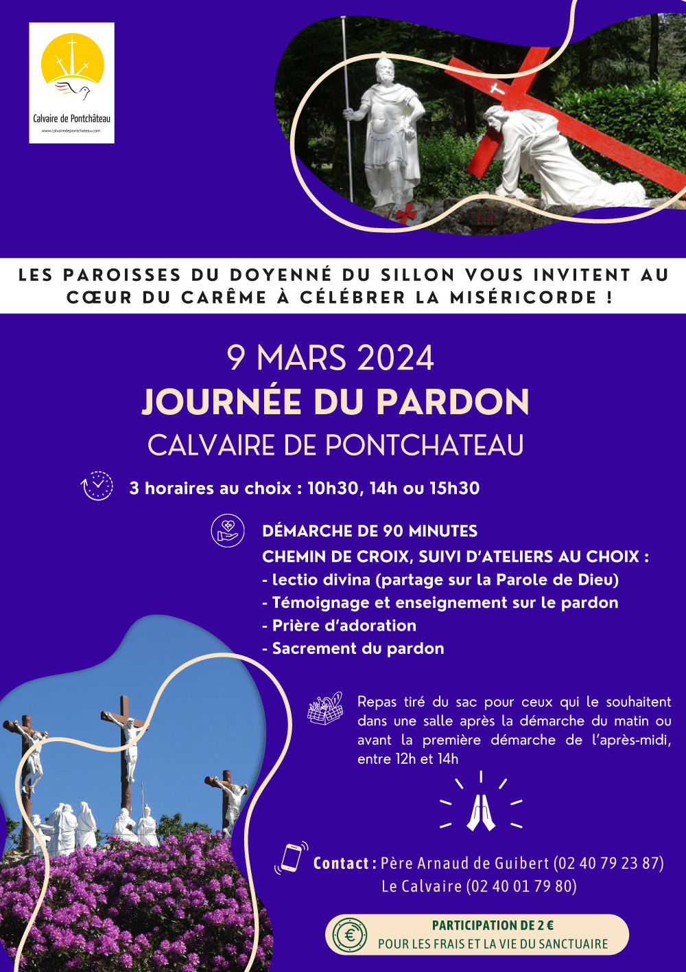 Les paroisses du doyenné de la zone Sillon * organisent une journée du pardon au Calvaire de Pontchâteau le samedi 9 mars 2024.