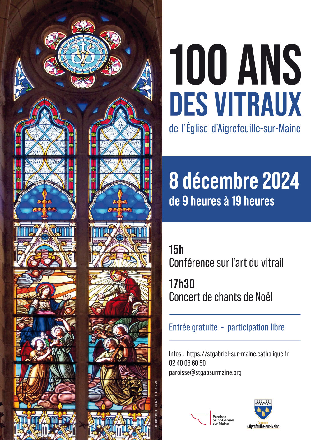 Le 8 décembre 2024, la paroisse Saint-Gabriel-sur-Maine organise une journée festive pour marquer le centenaire de l’ensemble remarquable des vitraux de l’église d’Aigrefeuille-sur-Maine : 1924 – 2024.
