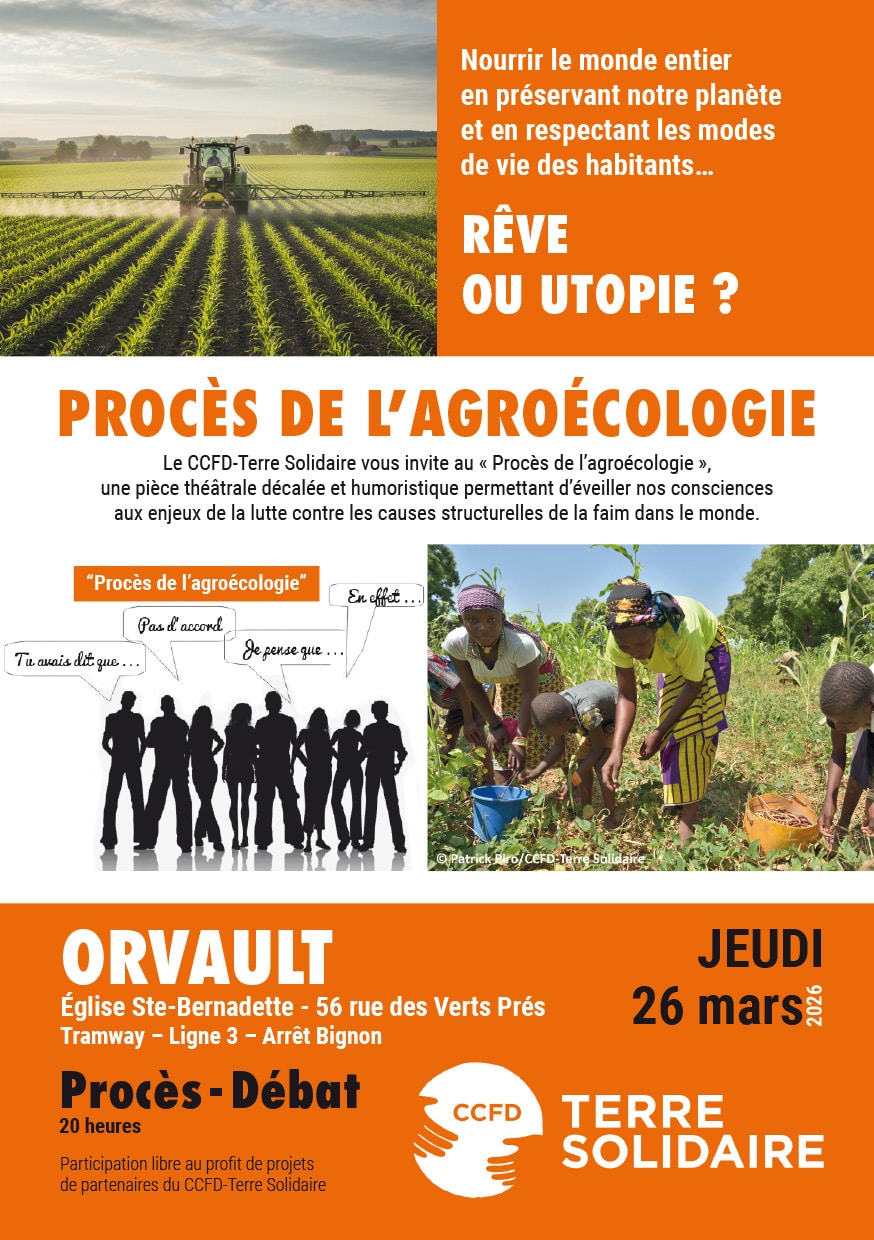 Le CCFD-Terre Solidaire vous invite au « Procès de l’agroécologie », une pièce théâtrale décalée et humoristique permettant d’éveiller nos consciences aux enjeux de la lutte contre les causes structurelles de la faim dans le monde.