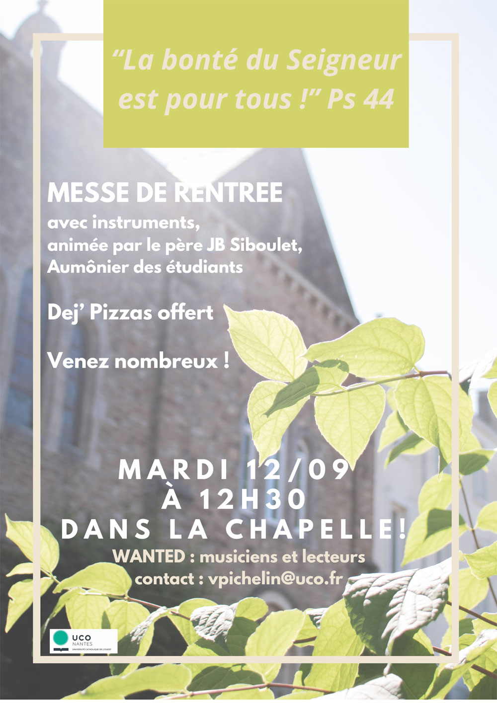 - Messe de rentrée avec instruments dans la chapelle, animée par le père Jean-baptiste Siboulet, aumônier des étudiants