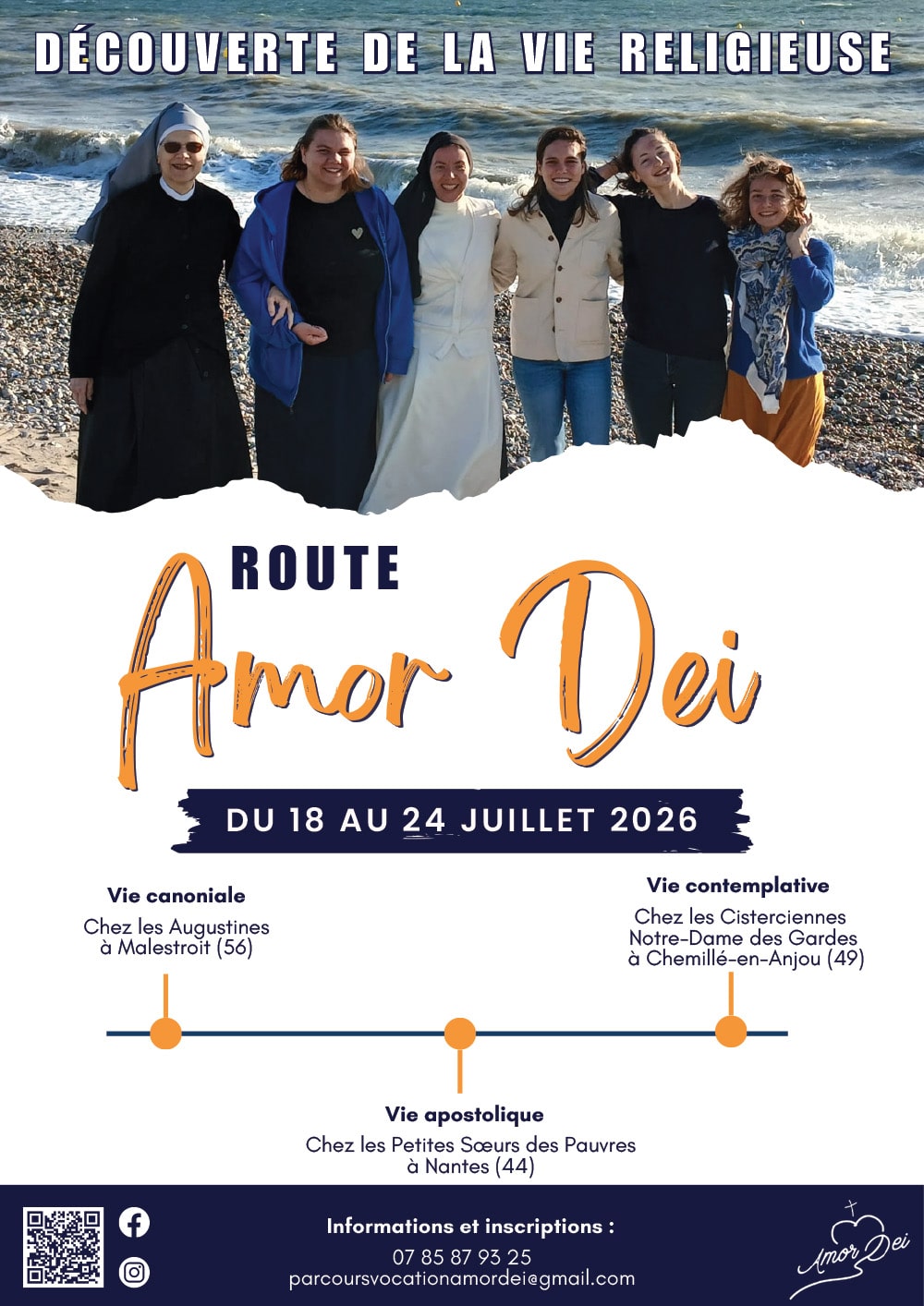 Organisée depuis 2017, la Route Amor Dei propose de découvrir « de l’intérieur » les 3 formes de vie religieuse féminine, en passant deux jours en immersion dans chaque communauté rencontrée, avec d’autres filles s’interrogeant aussi sur la vocation religieuse.