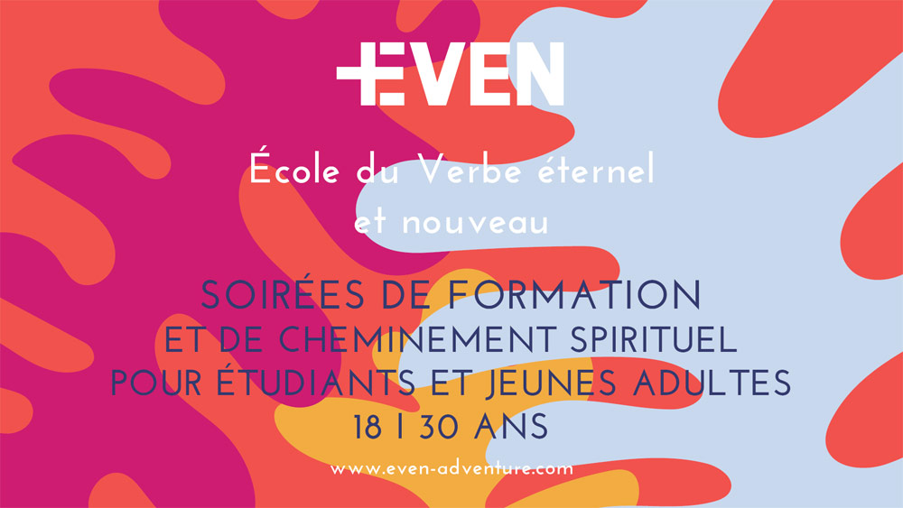 EVEN signifie « École du Verbe éternel et Nouveau ». Née en 2006 à Paris, EVEN est une école pour apprendre à écouter la Parole de Dieu transmise par la Tradition de l’Église. Convertis et transformés par cette Parole, nous apprenons à parler avec assurance pour annoncer l’Évangile. EVEN est une école pour devenir disciple et missionnaire.