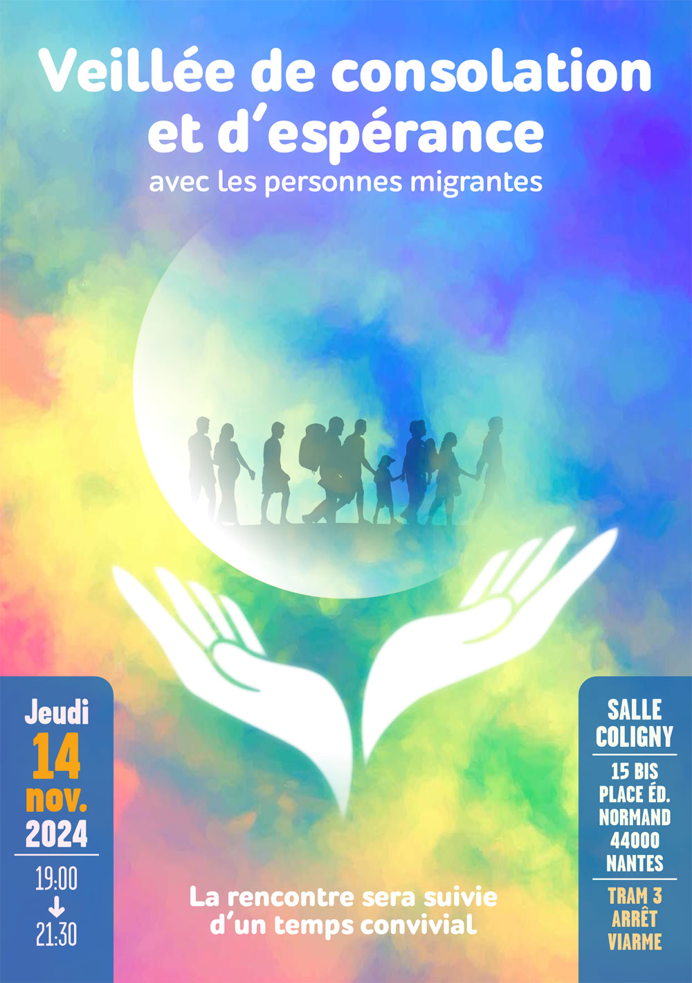 La pastorale des Migrants organise une « Veillée de consolation et d’espérance » avec les personnes migrantes le jeudi 14 novembre 2024 de 19h à 21h30 à la salle Coligny (15 bis Place Edouard Normand – 44000 Nantes).