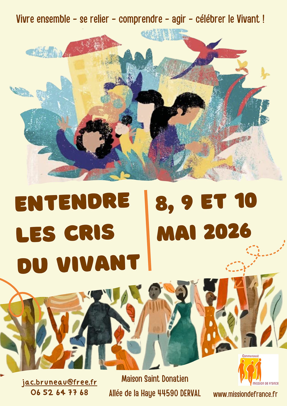 Week-end « Entendre les cris du vivant » 8 mai 2026 / 14h00 - 10 mai 2026 / 12h00 Maison Saint-Donatien de Derval La Haye, Derval Proposé par la Mission de France