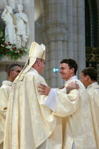 Le père Guillaume Le Floc’h, recteur du séminaire, a confirmé à l’évêque que Jean avait été jugé digne d’être ordonné, s’appuyant sur une année diaconale riche en engagements. Jean s’est formé au contact de diacres permanents, a approfondi sa compréhension du ministère et a su tisser des liens profonds avec les jeunes, les personnes âgées et les fidèles. Missionnaire dans l’âme, enraciné dans la prière, il s’est montré actif et entreprenant au service de l’Évangile.