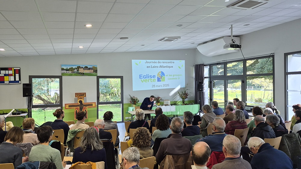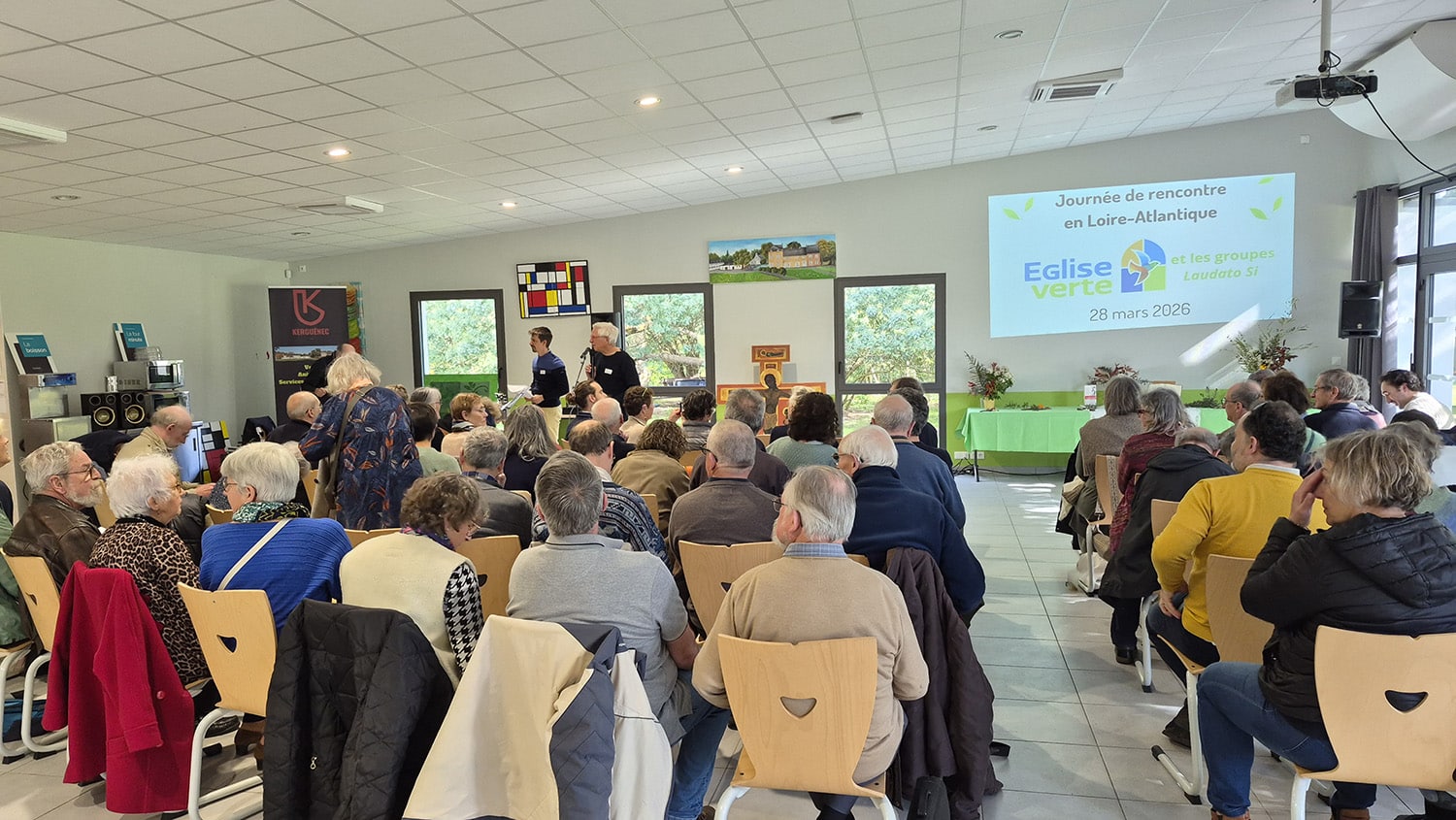 Venues en train ou en covoiturage de tout le département, près de 70 personnes étaient au rendez-vous de la journée de rencontre des groupes Église Verte et Laudato Si du 44 du samedi 28 mars 2026 à Kerguénec, journée qui a été ensoleillée, œcuménique, joyeuse et riche de partages. La journée était ouverte à tous, notamment aux acteurs pastoraux souhaitant creuser le sujet et découvrir davantage ce qu’est l’écologie intégrale.
