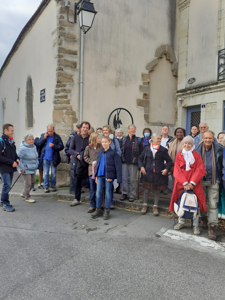Le retour se fit par un chemin plus goudronné où nous avons rejoint la salle paroissiale de la Roche-Bernard, en faisant un arrêt à la chapelle St Michel bien restaurée dans le bourg, et présentée par Michel, qui commença la prière des vêpres, aidé de Thierry, nous rendons grâce pour cette magnifique journée, le goûter partagé clôtura cette rencontre.