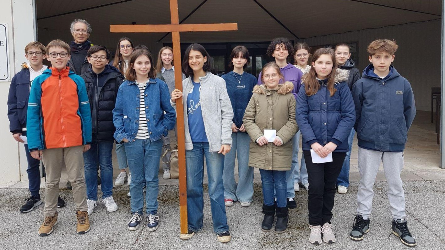 Le vendredi Saint, les jeunes de l’aumônerie de l’enseignement public de la Baule sont partis de l’aumônerie et ont cheminé jusqu’à l’église Sainte Thérèse, en procession avec la Croix, procession suivie de la méditation du chemin de Croix dans l’église. Ce fut un beau moment de prière pour les jeunes.