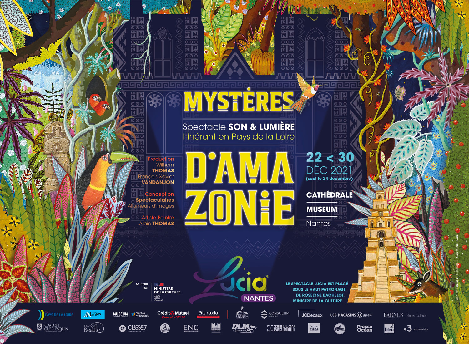 LUCIA, Mystères d’Amazonie : le spectacle son et lumière revient à Nantes du 22 au 30 décembre 2021, sur la Cathédrale et le Muséum d’Histoire Naturelle de Nantes.