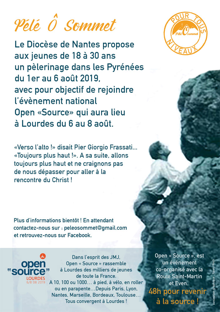 Le Pélé Ô Sommet est proposé par le diocèse de Nantes aux jeunes à partir de 18 ans, il se déroulera dans les Pyrénées du 1er au 8 août 2019.