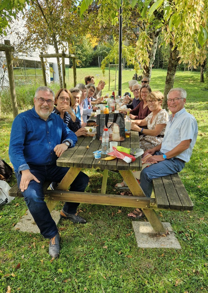 Et entre la réunion du matin et la visite de l’après-midi, un agréable moment de repas partagé, sur les tables extérieures de la Maison St Clair, profitant de la douceur de la journée.