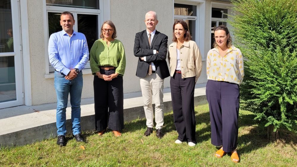 de gauche à droite : Guillaume Dessein (1er degré), Corinne Rumin (2nd degré), Frédéric Delemezure, Marie-Caroline Vinet (déléguée générale), Marjorie Gackière (directrice de l’ISFEC)
